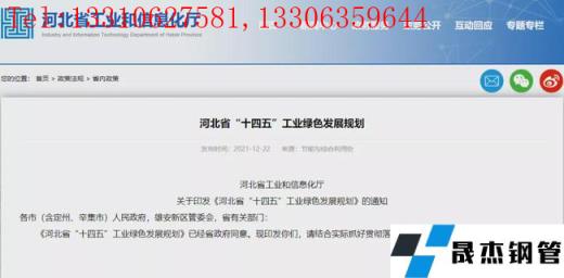 免責聲明:本網站(山東聊城晟杰無縫鋼管廠www.www-86604.com)刊載的“兼并重組、淘汰關停、嚴控新增…河北“十四五”工業發展規劃出爐”等均源于網絡,版權歸原作者所有,且僅代表原作者觀點,本文所載信息僅供參考。轉載僅為學習與交流之目的,如無意中侵犯您的合法權益,請及時聯系刪除。本網站刊登此篇文章并不意味著本站贊同其觀點或證實其內容的真實性,我們不對其科學性、嚴肅性等作任何形式的保證。如果侵犯了您的版權,請盡快聯系我們予以撤銷,謝謝合作!