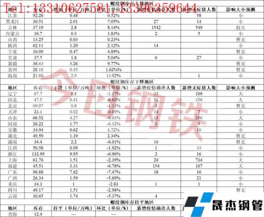 通過以上信息,小編了解到目前全國重點(diǎn)鋼鐵區(qū)域例如唐山大部分鋼企維持生產(chǎn),但因交通管制,無縫鋼管廠家目前出貨面臨運(yùn)輸困難;針對全國還有一些重點(diǎn)省市無縫鋼管廠家也受到了影響情況如下: