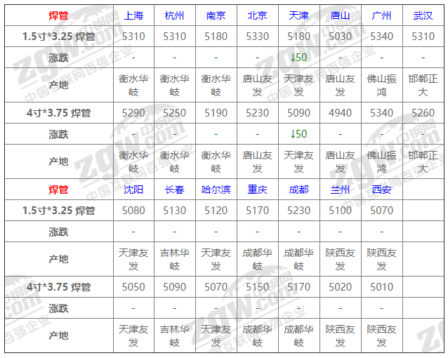 全國15個主要市場1.5寸*3.25 焊管平均價格5193元/噸,較上個交易日下調(diào)3元/噸。