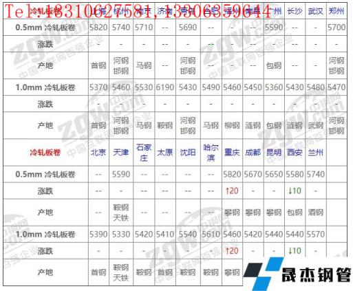 全國23個主要市場1.0mm 冷軋板卷平均價格5485元/噸,較上個交易日上調1元/噸。