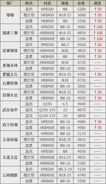 今日建材共12家無縫鋼管廠調價發布,其中: