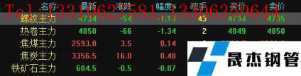 今日螺紋主力期貨跌54,收?qǐng)?bào)4743,跌幅1.13%;熱卷主力跌66,收?qǐng)?bào)4850,跌幅1.34%;焦煤主力漲3.5,收?qǐng)?bào)2593,漲幅0.14%;焦炭主力漲16,收?qǐng)?bào)3356.5,漲幅0.48%;鐵礦石主力跌0.07,收?qǐng)?bào)684.5,跌幅0.07%。