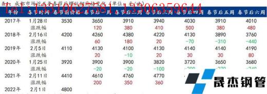 筆者回顧了近5年西南區(qū)域各主要建筑厚壁無縫鋼管市場價格,通過對節(jié)后六周價格變化的對比得出,除2020年春節(jié)后受公共衛(wèi)生事件影響,其余時間節(jié)后前兩周基本以“開門紅”的上漲行情為主。