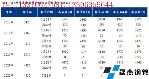 免責聲明:本網站(山東聊城晟杰無縫鋼管廠www.www-86604.com)刊載的“近5年春節前后重慶螺紋鋼價格和庫存走勢”等均源于網絡,版權歸原作者所有,且僅代表原作者觀點,本文所載信息僅供參考。轉載僅為學習與交流之目的,如無意中侵犯您的合法權益,請及時聯系刪除。本網站刊登此篇文章并不意味著本站贊同其觀點或證實其內容的真實性,我們不對其科學性、嚴肅性等作任何形式的保證。如果侵犯了您的版權,請盡快聯系我們予以撤銷,謝謝合作!