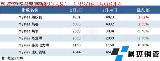 免責聲明:本網站(山東聊城晟杰無縫鋼管廠www.www-86604.com)刊載的“2022年02月07日晚餐:唐山鋼坯上調100,鋼材_無縫鋼管總庫存增超30%”等均源于網絡,版權歸原作者所有,且僅代表原作者觀點,本文所載信息僅供參考。轉載僅為學習與交流之目的,如無意中侵犯您的合法權益,請及時聯系刪除。本網站刊登此篇文章并不意味著本站贊同其觀點或證實其內容的真實性,我們不對其科學性、嚴肅性等作任何形式的保證。如果侵犯了您的版權,請盡快聯系我們予以撤銷,謝謝合作!