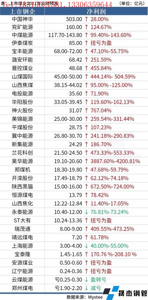 免責(zé)聲明:本網(wǎng)站(山東聊城晟杰無(wú)縫鋼管廠www.www-86604.com)刊載的“29家上市煤企業(yè)績(jī)飄紅,15家實(shí)現(xiàn)凈利潤(rùn)翻倍增長(zhǎng)”等均源于網(wǎng)絡(luò),版權(quán)歸原作者所有,且僅代表原作者觀點(diǎn),本文所載信息僅供參考。轉(zhuǎn)載僅為學(xué)習(xí)與交流之目的,如無(wú)意中侵犯您的合法權(quán)益,請(qǐng)及時(shí)聯(lián)系刪除。本網(wǎng)站刊登此篇文章并不意味著本站贊同其觀點(diǎn)或證實(shí)其內(nèi)容的真實(shí)性,我們不對(duì)其科學(xué)性、嚴(yán)肅性等作任何形式的保證。如果侵犯了您的版權(quán),請(qǐng)盡快聯(lián)系我們予以撤銷,謝謝合作!