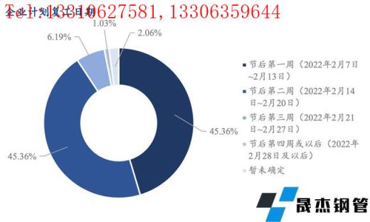 調(diào)研樣本中45.36%的企業(yè)在節(jié)后第一周復工,45.36%的樣本在節(jié)后第二周復工,還有1.03%的企業(yè)尚未確定復工時間。