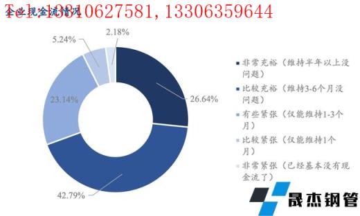 調(diào)研企業(yè)現(xiàn)金流情況整體尚可,26.64%的企業(yè)表示非常充裕,42.79%的企業(yè)表示比較充裕,30.57%的企業(yè)表示資金存在緊張問題。