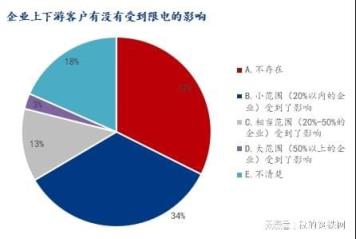 關(guān)于企業(yè)的上下游客戶有沒有受到限電的影響,參與調(diào)研企業(yè)中表示不存在占比32.37%,小范圍(20%以內(nèi)的企業(yè))受到了影響占比34.15%,相當(dāng)范圍(20%-50%的企業(yè))受到了影響占比12.42%,大范圍(50%以上的企業(yè))受到了影響占比2.66%,不清楚占比18.40%。可見還是有相當(dāng)一部分企業(yè)受到了限電影響。