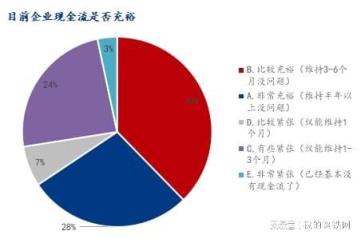 目前企業(yè)的現(xiàn)金流是否充裕,參與調(diào)研企業(yè)中表示比較充裕(維持3-6個(gè)月沒問題)占比37.69%,非常充裕(維持半年以上沒問題)占比27.94%,比較緊張(僅能維持1個(gè)月)占比6.87%,有些緊張(僅能維持1-3個(gè)月)占比24.17%,非常緊張(已經(jīng)基本沒有現(xiàn)金流了)占比3.33%。