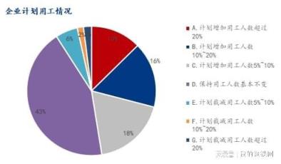 4、對于企業(yè)計(jì)劃用工情況,參與調(diào)研企業(yè)中47.45%企業(yè)計(jì)劃增加用工人數(shù),43.46%企業(yè)保持基本不變,9.09%的企業(yè)計(jì)劃裁減用工人數(shù)。