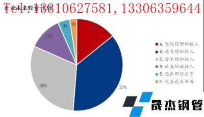 對于企業(yè)未來投資計(jì)劃,參與調(diào)研企業(yè)中表示大規(guī)模增加投入占比14.19%,適當(dāng)增加投入占比37.03%,暫不增加投入占比30.38%,適當(dāng)縮減投入占比11.75%,退出部分業(yè)務(wù)占比4.21%,完全退出市場占比2.44%。