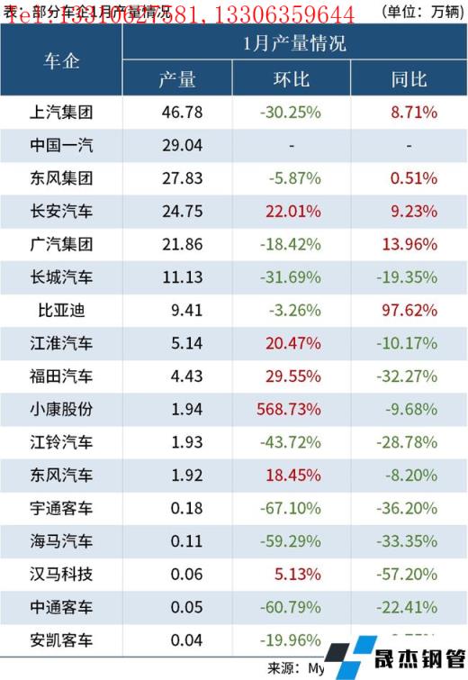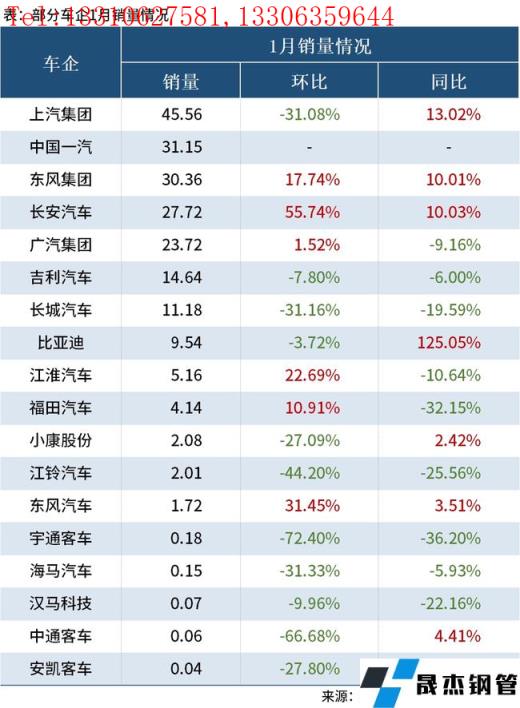 免責(zé)聲明:本網(wǎng)站(山東聊城晟杰無縫鋼管廠www.www-86604.com)刊載的“1月我國汽車產(chǎn)銷降幅明顯,多數(shù)車企呈現(xiàn)雙位數(shù)下跌”等均源于網(wǎng)絡(luò),版權(quán)歸原作者所有,且僅代表原作者觀點,本文所載信息僅供參考。轉(zhuǎn)載僅為學(xué)習(xí)與交流之目的,如無意中侵犯您的合法權(quán)益,請及時聯(lián)系刪除。本網(wǎng)站刊登此篇文章并不意味著本站贊同其觀點或證實其內(nèi)容的真實性,我們不對其科學(xué)性、嚴(yán)肅性等作任何形式的保證。如果侵犯了您的版權(quán),請盡快聯(lián)系我們予以撤銷,謝謝合作!