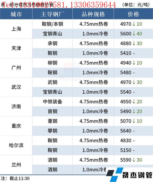 ◎樂(lè)從:24日早盤(pán)熱卷市場(chǎng)價(jià)格下跌10,4.75以上普柳燕4940-4950,2.75普5010-5160錳5120-5140。(單位:元/噸)