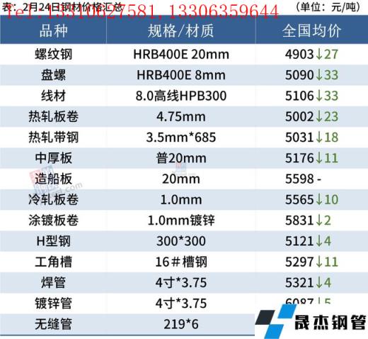 中厚板:2月24日,全國(guó)24個(gè)主要城市20mm普板均價(jià)5176元/噸,較上一交易日下跌11元/噸。盤面走跌,市場(chǎng)交投氛圍差,午后幾乎無(wú)成交。本周北方部分城市陸續(xù)解除重點(diǎn)時(shí)間段空氣質(zhì)量保障措施,部分鋼企高爐陸續(xù)復(fù)產(chǎn),執(zhí)行采暖季限產(chǎn)政策,后期產(chǎn)能利用率會(huì)小幅提升。下游需求雖處于恢復(fù)期,但整體增速不及預(yù)期,下游實(shí)際采購(gòu)需要靠低價(jià)去刺激,高價(jià)反而會(huì)壓制成交。綜合來(lái)看,預(yù)計(jì)25日中厚板價(jià)格弱勢(shì)調(diào)整為主。