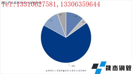 從我國厚壁無縫鋼管出口品種構(gòu)成來看(以2021年為例),我國厚壁無縫鋼管出口主要以板材為主,約占出口總量的68%;其次棒線材及管材,約占總出口量的12%,11%。