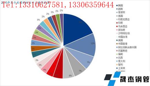 從我國出口目標(biāo)國構(gòu)成情況來看,我國厚壁無縫鋼管主要輸出地位韓國、越南、菲律賓、泰國等地,其中韓國及越南由于當(dāng)?shù)丶庸S較多,除當(dāng)?shù)匦〔糠窒耐猓D(zhuǎn)口貿(mào)易占大部分進(jìn)口量。因此韓國、越南、菲律賓等地進(jìn)口品種基本以板材為主。雖然近幾年進(jìn)口量稍許有所減少,但從量級上來看仍為中國最大買家。