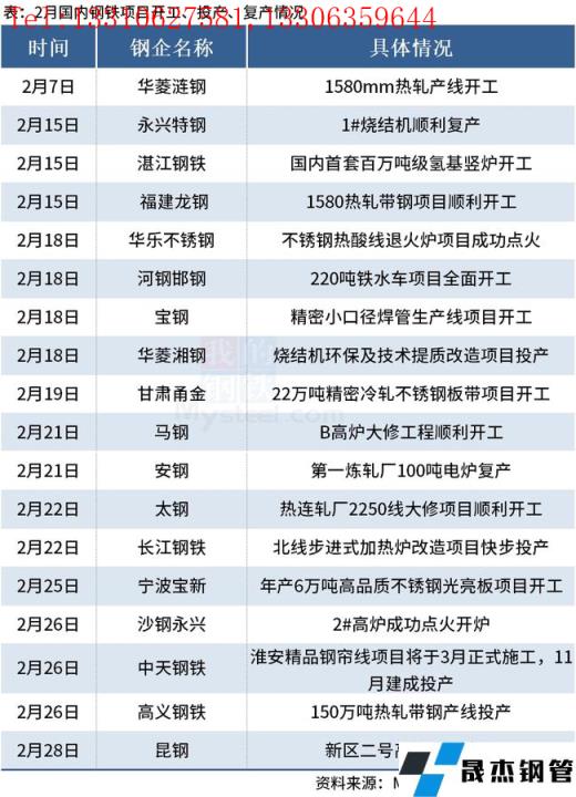 免責聲明:本網站(山東聊城晟杰無縫鋼管廠www.www-86604.com)刊載的“2月國內18個鋼鐵項目開工、投產和復產”等均源于網絡,版權歸原作者所有,且僅代表原作者觀點,本文所載信息僅供參考。轉載僅為學習與交流之目的,如無意中侵犯您的合法權益,請及時聯系刪除。本網站刊登此篇文章并不意味著本站贊同其觀點或證實其內容的真實性,我們不對其科學性、嚴肅性等作任何形式的保證。如果侵犯了您的版權,請盡快聯系我們予以撤銷,謝謝合作!