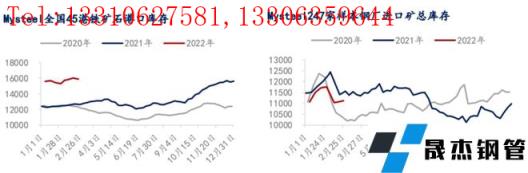 2.2供給:二月無縫厚壁鋼管廠家放慢收貨節奏 整體國內礦山鐵精粉去庫幅度較小