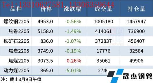 免責聲明:本網站(山東聊城晟杰無縫鋼管廠www.www-86604.com)刊載的“2022年03月09日午報:鋼價多數下跌,動力煤期貨跌逾5%”等均源于網絡,版權歸原作者所有,且僅代表原作者觀點,本文所載信息僅供參考。轉載僅為學習與交流之目的,如無意中侵犯您的合法權益,請及時聯系刪除。本網站刊登此篇文章并不意味著本站贊同其觀點或證實其內容的真實性,我們不對其科學性、嚴肅性等作任何形式的保證。如果侵犯了您的版權,請盡快聯系我們予以撤銷,謝謝合作!