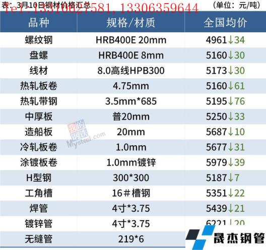 建筑厚壁無縫鋼管:3月10日,全國31個主要城市20mm三級抗震螺紋鋼均價4961元/噸,較上個交易日下跌34元/噸。本周供給繼續(xù)小增,庫存迎來拐點(diǎn),且降幅尚可。綜合來看,目前供給仍然處于回升階段,但整體增量有限;需求方面,隨著天氣逐漸好轉(zhuǎn),需求有所回升??紤]到近期國際形勢仍然不穩(wěn),短期現(xiàn)貨市場受情緒波動影響較大。因此預(yù)計(jì)11日國內(nèi)建筑厚壁無縫鋼管價格將繼續(xù)窄幅趨弱為主。
