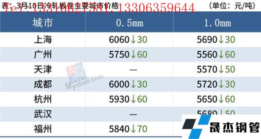 冷軋板卷:3月10日,全國24個主要城市1.0mm冷卷均價5677元/噸,較上個交易日下跌31元/噸。隨著期貨盤面連續(xù)下跌,價格也隨之下調(diào),市場交投氛圍明顯冷清,今日整體成交一般。心態(tài)方面,部分庫存較大的貿(mào)易商還是以出貨降庫為主,心態(tài)較為謹(jǐn)慎。庫存方面,據(jù)不完全統(tǒng)計(jì),現(xiàn)冷軋無縫厚壁鋼管廠家?guī)齑?4.57萬噸,周環(huán)比減少2.23萬噸,社會庫存143.40萬噸,周環(huán)比增加0.97萬噸,周消費(fèi)量80.22萬噸,環(huán)比減少2.64萬噸。綜合來看,故預(yù)計(jì)11日國內(nèi)冷軋板卷價格或?qū)⑵踹\(yùn)行。