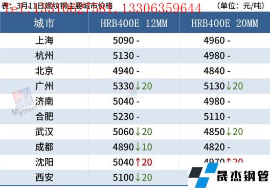 建筑厚壁無縫鋼管:3月11日,全國31個(gè)主要城市20mm三級抗震螺紋鋼均價(jià)4952元/噸,較上個(gè)交易日跌9元/噸。短期來看,近期產(chǎn)量回升有限,短流程無縫厚壁鋼管廠家受成本影響,生產(chǎn)不飽和;需求端,本周需求全面回升,且?guī)齑娉霈F(xiàn)拐點(diǎn)。綜合來看,近期供需雙增,但由于國際局勢不穩(wěn),現(xiàn)貨市場整體表現(xiàn)或維持窄幅震蕩為主。