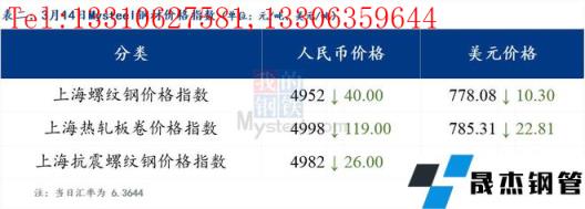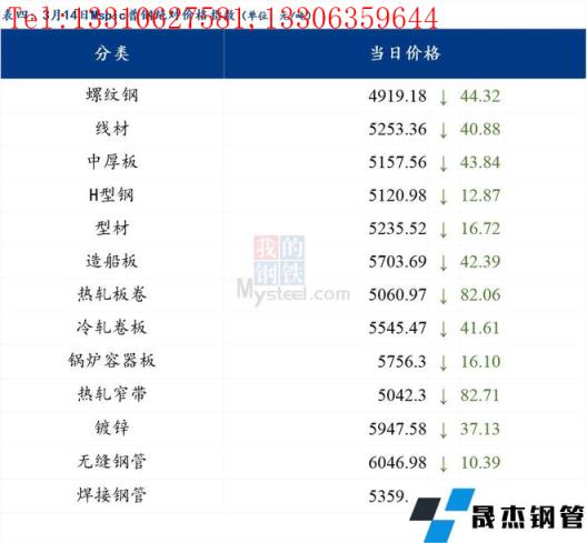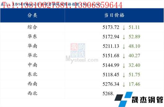 3月14日普鋼絕對價格指數變化:綜合指數5173.72,下跌51.11;螺紋鋼指數4919.18,下跌44.32;線材指數5253.36,下跌40.88;熱軋板卷指數5060.97,下跌82.06;冷軋板卷指數5545.47,下跌41.61;中厚板指數5157.56,下跌43.84。