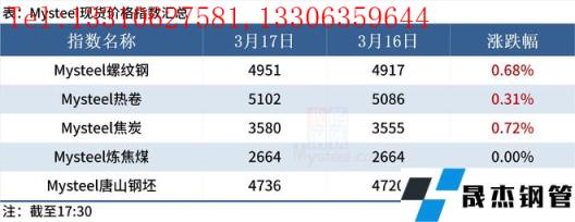 ◎ 3月17日,統計新口徑114家無縫厚壁鋼管廠家進口燒結粉總庫存3456.00萬噸,燒結粉總日耗104.97萬噸。原口徑64家無縫厚壁鋼管廠家進口燒結粉總庫存1570.61萬噸,燒結粉總日耗52.44萬噸,庫存消費比29.95,燒結礦中平均使用進口礦配比86.72%,無縫厚壁鋼管廠家不含稅平均鐵水成本3222元/噸。詳情>>