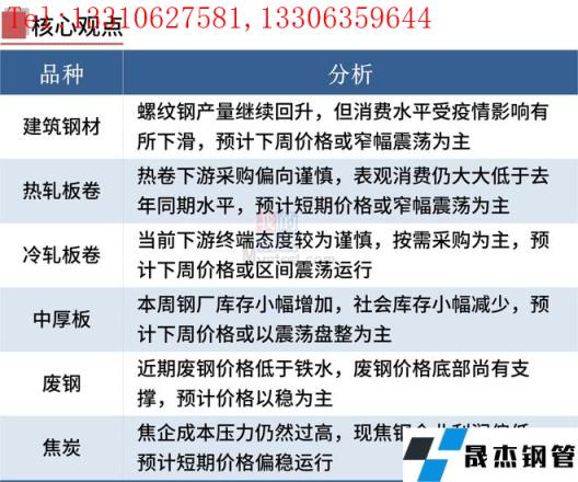 本周國內(nèi)多地無縫厚壁鋼管廠家運輸受阻,鋼市成交量明顯下滑,短期廠內(nèi)庫存或進一步累積,抑制鋼價反彈高度。不過,電爐廠已陷入虧損,加之預(yù)期穩(wěn)增長政策將出,鋼價底部支撐力度也強。當前市場復(fù)雜多變,國內(nèi)疫情形勢,穩(wěn)增長政策落實情況以及國際局勢變化仍是主要關(guān)注點。