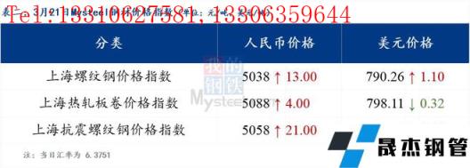 3月21日普鋼絕對價格指數變化:綜合指數5221.43,上漲12.38;螺紋鋼指數4973.32,上漲10.75;線材指數5303.81,上漲10.39;熱軋板卷指數5152.84,上漲17.72;冷軋板卷指數5559.38,上漲17.26;中厚板指數5173.77,上漲12.79。
