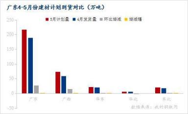 2、5月廣東地區(qū)建筑材區(qū)內(nèi)(廣東和廣西)計(jì)劃供應(yīng)量共計(jì)290萬(wàn)噸,環(huán)比增加7.9萬(wàn)噸,增幅2.8%;區(qū)外計(jì)劃供應(yīng)量為49.1萬(wàn)噸,環(huán)比增加0.2萬(wàn)噸,增幅0.4%;