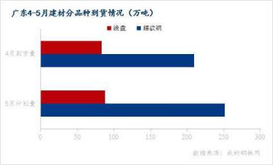 圖四:廣東建材4-5月分品種到貨情況(單位:萬(wàn)噸)
