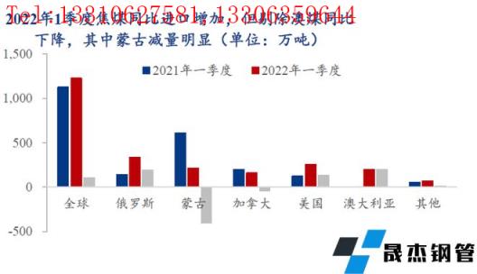 在地緣政治沖突等因素的影響下,國際焦煤供需格局偏緊,全球煤價整體走強(qiáng),制約我國焦煤進(jìn)口。2022年1月下旬至4月下旬,不斷沖擊年內(nèi)新高的鐵水疊加進(jìn)口減量,焦煤四部門(港口+煤礦+焦企+無縫厚壁鋼管廠家)庫存連續(xù)12周降庫。剔除澳煤通關(guān)量,焦煤進(jìn)口一季度同比下滑約百萬噸。而近期不斷傳出有進(jìn)口增量消息的蒙煤則備受市場期待,我們認(rèn)為在今年粗鋼產(chǎn)量限產(chǎn)的背景下,鐵水產(chǎn)量有望逐步見頂,焦煤即將擺脫需求最好供應(yīng)最差的時期。由此,在焦煤利潤高位,厚壁無縫鋼管利潤受制及供需缺口環(huán)比減少的情況下,焦煤價格存在階段性高位回調(diào)風(fēng)險(xiǎn)。