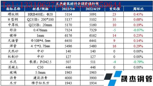 免責聲明:本網站(山東聊城晟杰無縫鋼管廠www.www-86604.com)刊載的“建筑原材料周報(4.29-5.6)”等均源于網絡,版權歸原作者所有,且僅代表原作者觀點,本文所載信息僅供參考。轉載僅為學習與交流之目的,如無意中侵犯您的合法權益,請及時聯系刪除。本網站刊登此篇文章并不意味著本站贊同其觀點或證實其內容的真實性,我們不對其科學性、嚴肅性等作任何形式的保證。如果侵犯了您的版權,請盡快聯系我們予以撤銷,謝謝合作!