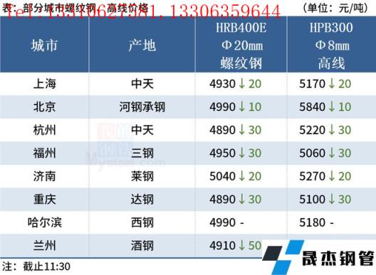 ◎杭州:10日早盤杭州優特鋼市場價格跌30?,F45#Φ30以上主流價格杭5280淮5300南5280,元立(直發)5290中天5280東方5260,40Cr杭5490淮5540;齒輪萊鋼5720,鉻鉬建龍5950淮鋼6000。(單位:元/噸)