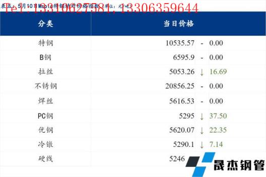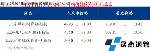 5月10日普鋼絕對(duì)價(jià)格指數(shù)變化:綜合指數(shù)5177.26,下跌43.86;螺紋鋼指數(shù)4975.63,下跌49.88;線材指數(shù)5355.29,下跌47.08;熱軋板卷指數(shù)4916.54,下跌59.11;冷軋板卷指數(shù)5462.65,下跌35.59;中厚板指數(shù)5174.25,下跌24.65。
