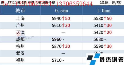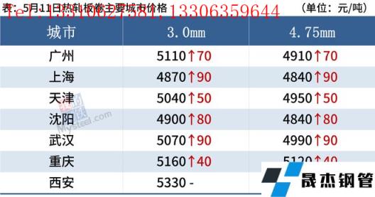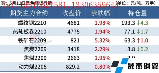 熱軋板卷:5月11日,全國(guó)24個(gè)主要城市4.75mm熱軋板卷均價(jià)5048元/噸,較上個(gè)交易日上漲36元/噸。現(xiàn)貨市場(chǎng)早盤報(bào)價(jià)回漲,市場(chǎng)成交尚可,盤中期卷持續(xù)上漲,市場(chǎng)價(jià)格跟漲,漲后成交表現(xiàn)一般,整體觀望情緒濃厚。總體來(lái)看,前期盤面大幅下跌,導(dǎo)致了市場(chǎng)需求明顯減少,無(wú)縫厚壁鋼管廠家利潤(rùn)接近虧損線,在盤面反彈回漲之后,市場(chǎng)情緒有所提振,前期部分延遲需求逐步釋放,商家壓力有所減輕。預(yù)計(jì)12日全國(guó)熱軋板卷或?qū)⑵珡?qiáng)運(yùn)行為主。