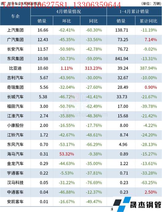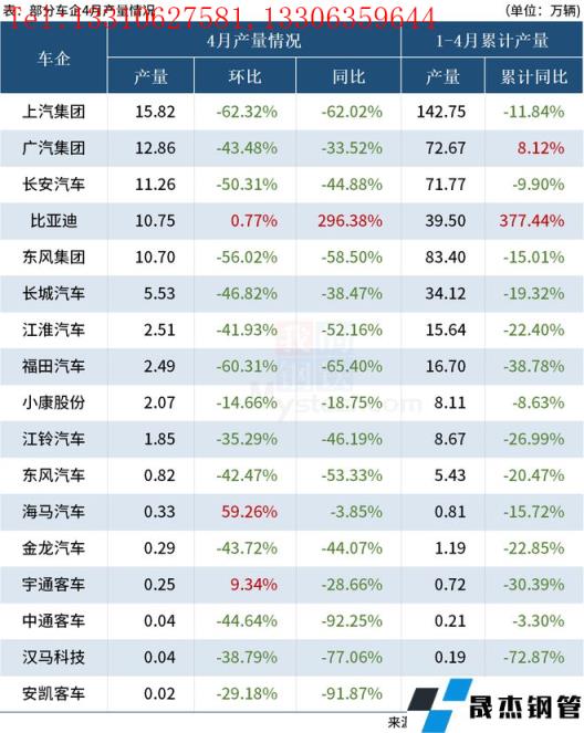 免責聲明:本網站(山東聊城晟杰無縫鋼管廠www.www-86604.com)刊載的“4月19家車企銷量出爐,超九成同比大降”等均源于網絡,版權歸原作者所有,且僅代表原作者觀點,本文所載信息僅供參考。轉載僅為學習與交流之目的,如無意中侵犯您的合法權益,請及時聯系刪除。本網站刊登此篇文章并不意味著本站贊同其觀點或證實其內容的真實性,我們不對其科學性、嚴肅性等作任何形式的保證。如果侵犯了您的版權,請盡快聯系我們予以撤銷,謝謝合作!