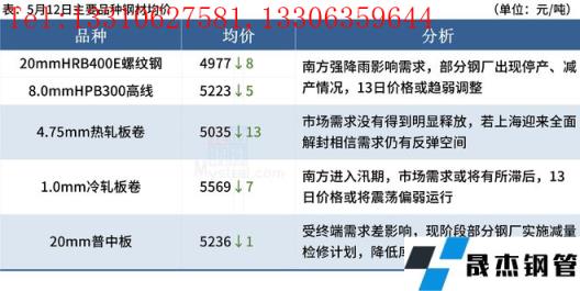 ◎ 從5月6日至5月11日期間,廣東14家無縫厚壁鋼管廠家多次下調(diào)廢鋼采購價(jià)格,最高跌幅達(dá)150元/噸。在暴雨的影響下,部分無縫厚壁鋼管廠家考慮到成品庫存壓力,清遠(yuǎn)地區(qū)多數(shù)電弧爐無縫厚壁鋼管廠家陸續(xù)減產(chǎn),從原先的生產(chǎn)18-20小時(shí)到目前的8-12個(gè)小時(shí),生產(chǎn)時(shí)間大幅度縮短,維持最低生產(chǎn),個(gè)別無縫厚壁鋼管廠家還出現(xiàn)了停產(chǎn)檢修。詳情>>