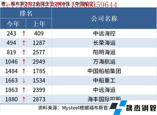 免責聲明:本網站(山東聊城晟杰無縫鋼管廠www.www-86604.com)刊載的“:中國8家船企上榜福布斯2022全球企業2000強”等均源于網絡,版權歸原作者所有,且僅代表原作者觀點,本文所載信息僅供參考。轉載僅為學習與交流之目的,如無意中侵犯您的合法權益,請及時聯系刪除。本網站刊登此篇文章并不意味著本站贊同其觀點或證實其內容的真實性,我們不對其科學性、嚴肅性等作任何形式的保證。如果侵犯了您的版權,請盡快聯系我們予以撤銷,謝謝合作!