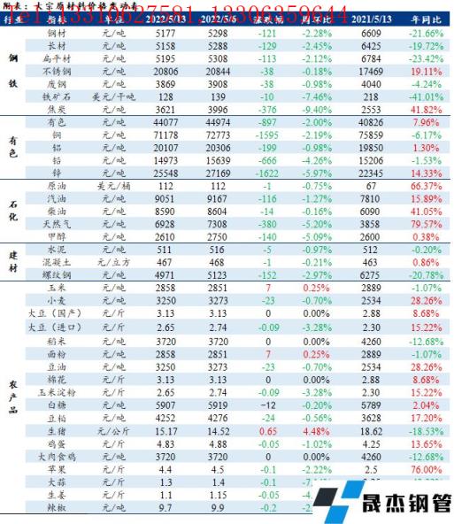 免責聲明:本網站(山東聊城晟杰無縫鋼管廠www.www-86604.com)刊載的“周報:大宗工業原材料、能源及農產品價格周報(5.09-5.13)”等均源于網絡,版權歸原作者所有,且僅代表原作者觀點,本文所載信息僅供參考。轉載僅為學習與交流之目的,如無意中侵犯您的合法權益,請及時聯系刪除。本網站刊登此篇文章并不意味著本站贊同其觀點或證實其內容的真實性,我們不對其科學性、嚴肅性等作任何形式的保證。如果侵犯了您的版權,請盡快聯系我們予以撤銷,謝謝合作!