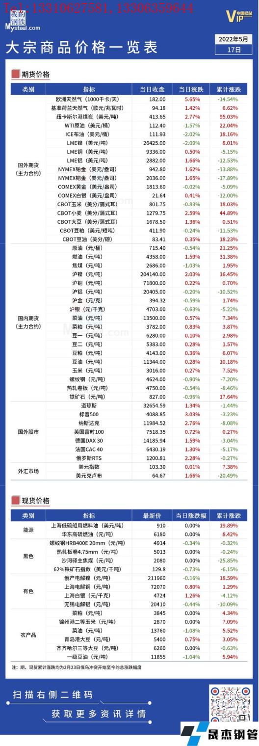 免責聲明:本網站(山東聊城晟杰無縫鋼管廠www.www-86604.com)刊載的“俄烏局勢丨大宗商品價格一覽表(5月17日)”等均源于網絡,版權歸原作者所有,且僅代表原作者觀點,本文所載信息僅供參考。轉載僅為學習與交流之目的,如無意中侵犯您的合法權益,請及時聯系刪除。本網站刊登此篇文章并不意味著本站贊同其觀點或證實其內容的真實性,我們不對其科學性、嚴肅性等作任何形式的保證。如果侵犯了您的版權,請盡快聯系我們予以撤銷,謝謝合作!