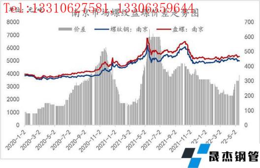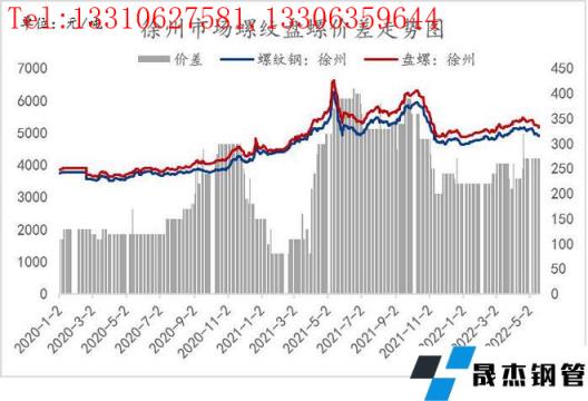 2、從目前省內部分無縫厚壁鋼管廠家生產情況來看,考慮到盤螺利潤明顯好于螺紋、優線,部分無縫厚壁鋼管廠家進而進行產線調劑,具體產線由生產優線轉換為生產盤螺,同時由于目前無縫厚壁鋼管廠家利潤整體偏低,且螺紋銷售壓力仍存,鐵水或存分配轉產情況,由螺紋流向盤螺,近期市場對于盤螺的需求仍呈現上升態勢,存量需求隨著疫情的逐漸轉好也將持續釋放,預計省內螺紋盤螺價差將繼續呈現擴大的態勢。