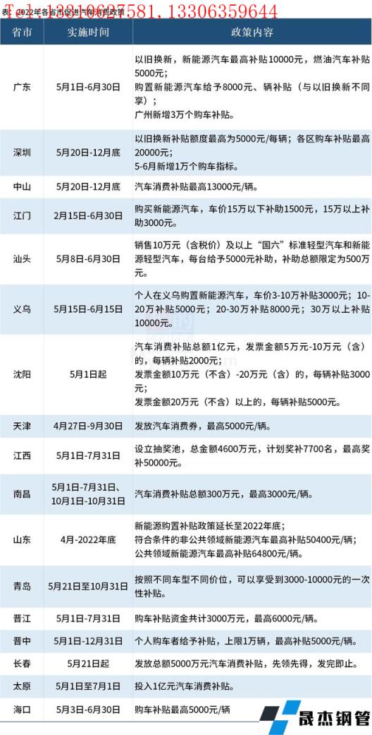 免責聲明:本網站(山東聊城晟杰無縫鋼管廠www.www-86604.com)刊載的“17省市發放汽車消費券,最高補貼超萬元”等均源于網絡,版權歸原作者所有,且僅代表原作者觀點,本文所載信息僅供參考。轉載僅為學習與交流之目的,如無意中侵犯您的合法權益,請及時聯系刪除。本網站刊登此篇文章并不意味著本站贊同其觀點或證實其內容的真實性,我們不對其科學性、嚴肅性等作任何形式的保證。如果侵犯了您的版權,請盡快聯系我們予以撤銷,謝謝合作!