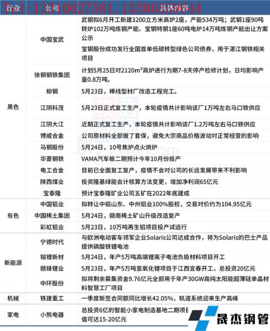 武鋼擬6月開工新建3200立方米高爐2座,產能534萬噸;江陰科茂、江陰大江兩無縫厚壁鋼管廠家近期正式復工;中國鋁業擬轉讓中鋁山東、中州鋁業100%股權,交易對價約為104.95億元。