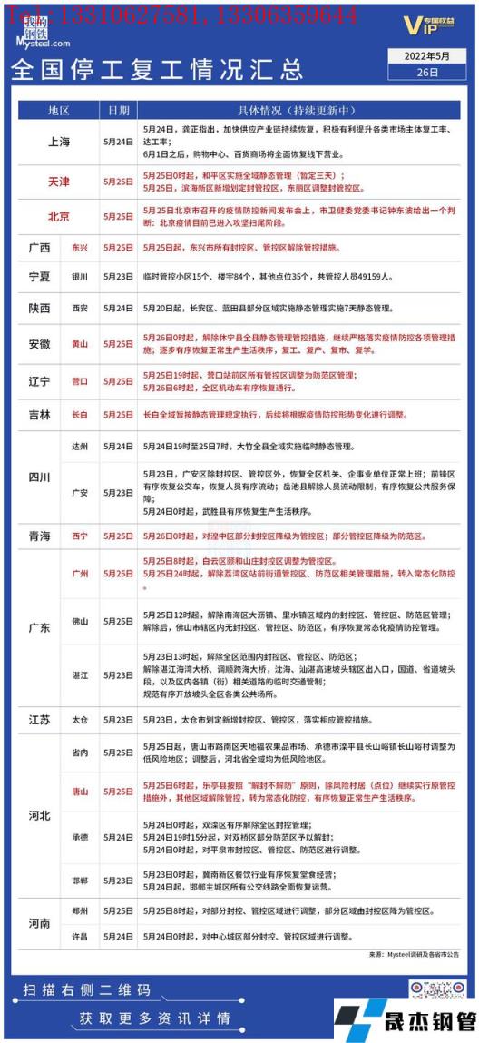 免責(zé)聲明:本網(wǎng)站(山東聊城晟杰無縫鋼管廠www.www-86604.com)刊載的“疫情影響丨全國停工復(fù)工情況匯總(5月26日)”等均源于網(wǎng)絡(luò),版權(quán)歸原作者所有,且僅代表原作者觀點,本文所載信息僅供參考。轉(zhuǎn)載僅為學(xué)習(xí)與交流之目的,如無意中侵犯您的合法權(quán)益,請及時聯(lián)系刪除。本網(wǎng)站刊登此篇文章并不意味著本站贊同其觀點或證實其內(nèi)容的真實性,我們不對其科學(xué)性、嚴(yán)肅性等作任何形式的保證。如果侵犯了您的版權(quán),請盡快聯(lián)系我們予以撤銷,謝謝合作!