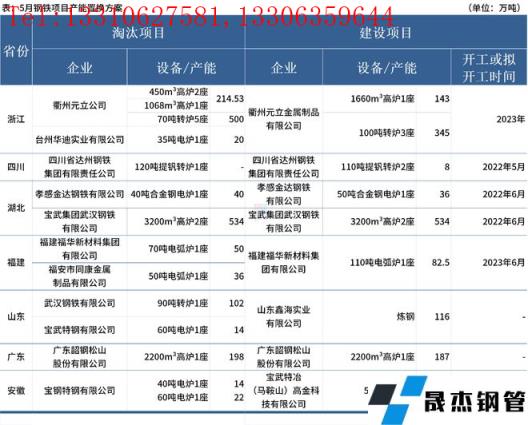 據(jù)不完全統(tǒng)計(jì),5月國(guó)內(nèi)8家無縫厚壁鋼管廠家發(fā)布鋼鐵產(chǎn)能置換方案。其中,涉及新建煉鋼產(chǎn)能623.5萬噸,新建煉鐵產(chǎn)能864萬噸;涉及淘汰煉鋼產(chǎn)能798萬噸,淘汰煉鐵產(chǎn)能946.53萬噸。