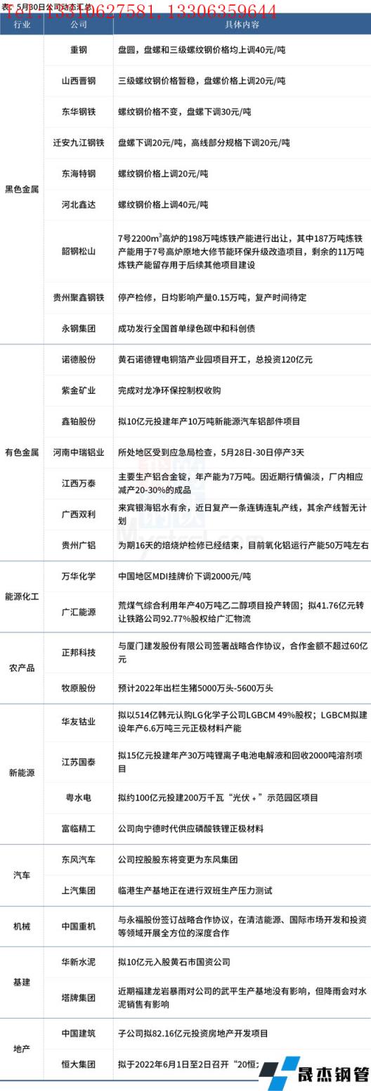 5月31日,匯總部分大宗商品相關(guān)企業(yè)動態(tài)。