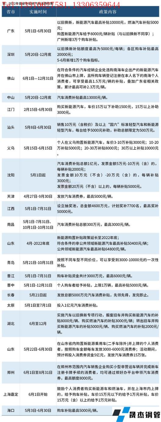 據(jù)不完全統(tǒng)計(jì),今年以來(lái)共有22個(gè)省市出臺(tái)了促進(jìn)汽車(chē)消費(fèi)的相關(guān)政策。其中上海市為鼓勵(lì)個(gè)人消費(fèi)者購(gòu)買(mǎi)新能源車(chē)和燃油車(chē),夠車(chē)價(jià)15萬(wàn)元以下的給予1萬(wàn)元補(bǔ)貼,車(chē)價(jià)15萬(wàn)元(含)以上的給予2萬(wàn)元補(bǔ)貼。廣東省給予個(gè)人購(gòu)置新能源汽車(chē)8000元/輛補(bǔ)貼。5月1日至7月1日,太原投入1億元汽車(chē)消費(fèi)補(bǔ)貼。具體內(nèi)容如下: